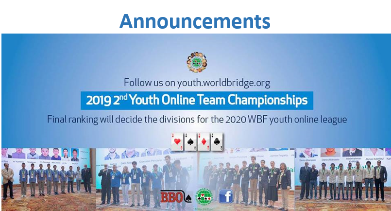World Bridge Youth News will provide you with the latest breaking news, tournaments results, photos and videos straight from all the most important Bridge Youth activity worldwide.