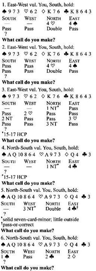 Don’t mastermind. Don’t assume that partner has this or that or anything else. If the hand doesn’t meet your requirements for a reopening double, pass. Leave the far-out positions for the winners (and losers).