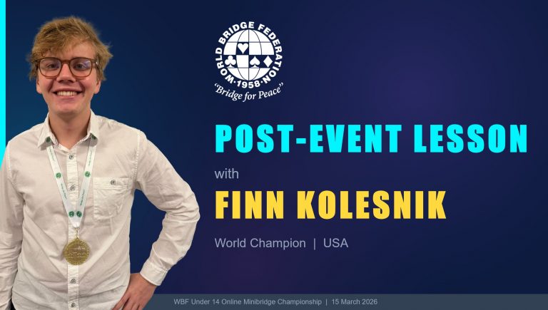 When the last board was played, the young players moved to Zoom for a post-tournament lesson. As players joined the meeting, the screen filled with something that no official tournament report could ever quite capture: a flood of emoji and waving national flags sent by dozens of excited children who had just played their first international event. WBF President Franck Riehm and EBL President and Championship Manager Eric Laurant both admitted, with good humor, to feeling slightly outmatched in the emoji department. They greeted the players warmly before handing the floor to the session’s star guest.