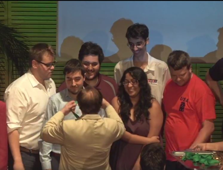 A prize-giving ceremony is always a happy occasion, and in Lyon on Wednesday evening there was plenty of joy as 12 teams in four categories — Juniors,Youngsters, Girls and Kids — were presented with the hardware for which they have played for more than a week — gold, silver and bronze medals. WBF President Emeritus José Damiani congratulated all the competitors gathered in the Vu-graph auditorium for what they are doing for the game of bridge and the world.“You are our future,” said Damiani, “and our bright future. You are doing something important for the world, which is peace. Thursday Schedule